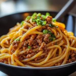 Asian Inspired Ground Beef Spaghetti pairs well with a fresh side salad tossed with a light vinaigrette or steamed vegetables. Consider serving it alongside steamed dumplings or spring rolls for a complete Asian-inspired feast. For beverages, iced green tea or sparkling water with a splash of lime complements the flavors beautifully. This recipe is also fantastic for potlucks or family gatherings—easily doubled and served in a large platter.