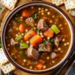 A nourishing, soul-warming soup that blends tender beef, hearty barley, and vibrant vegetables for a comforting meal.