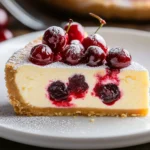 A delightful dessert featuring creamy cheesecake, tart cranberry sauce, and sweet white chocolate swirls, perfect for any occasion.