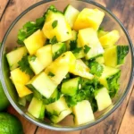 A refreshing salad that combines the sweetness of ripe pineapple with the cool crunch of cucumber, enhanced by lime and cilantro.