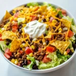 A hearty Tex-Mex dish blending ground beef, cabbage, and Fritos corn chips for a crunchy twist.