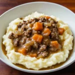 A comforting dish of ground beef and rich, savory gravy served over fluffy mashed potatoes, perfect for families and busy weeknights.