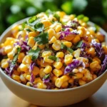 A vibrant and flavorful coleslaw featuring sweet charred corn, crunchy cabbage, and a zesty creamy dressing, perfect for any gathering.