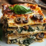 A delightful lasagna layered with mushrooms, spinach, and rich cheeses, perfect for any meal.