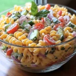 A vibrant and flavorful Pasta Salad featuring fresh vegetables, creamy dressing, and tender pasta – perfect for picnics and gatherings.