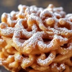 A nostalgic recipe for crispy, golden funnel cakes, perfect for state fairs or festive occasions, dusted with powdered sugar.