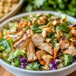 To finish, garnish your salad with fresh chopped cilantro. Serve your Thai Peanut Chicken Salad immediately while it’s fresh, vibrant, and ready to impress.